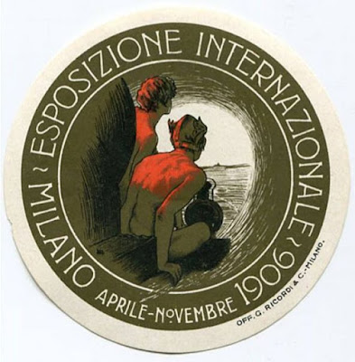 Mit dem symbolischen Bild, erstellt von Leopoldo Metlicovitz, wurde die Eröffnung des Simplon Tunnels durch die Alpen an L'Esposizione Internationale di Milano 1906 gefeiert, deshalb wurde sie auch Esposizione Internazionale del Sempione genannt. Die neue Bahnlinie ermöglichte die erste direkte Bahnstrecke zwischen Paris und Mailand.